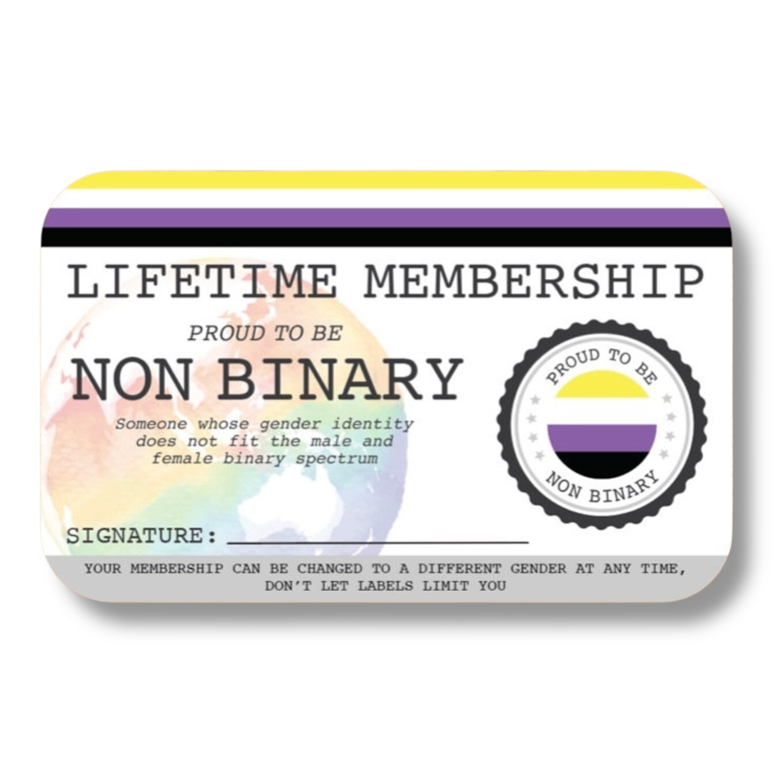 Non Binary Lifetime Membership Card
